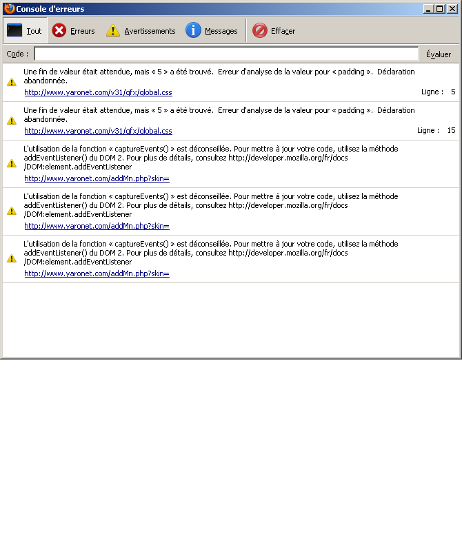 Liste des fichiers