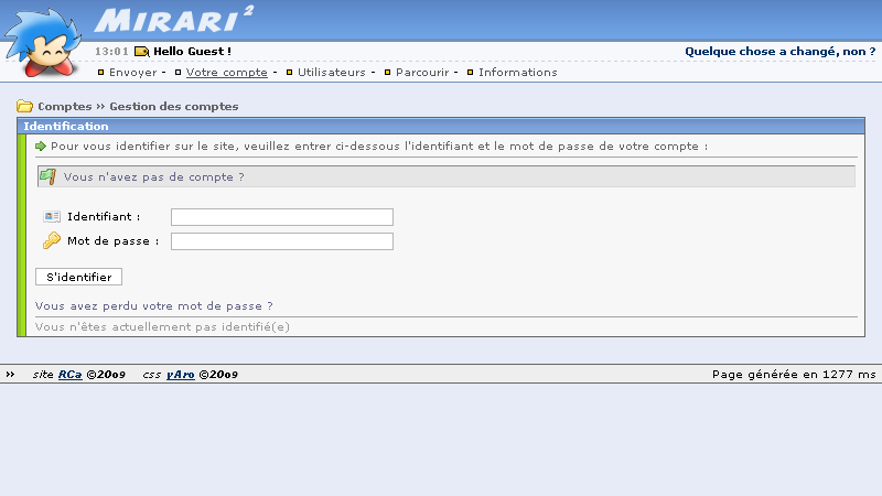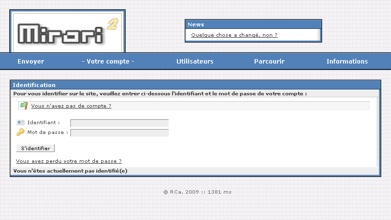 - Beaucoup de thèmes proposent des fonctionnalités CSS ou Javascript avancées, qui ne sont pas forcément compatibles avec tous les navigateurs Internet. En particulier, quelques problèmes d'affichages se présentent avec Internet Explorer 6 (la version 7 étant par contre compatible avec tous les thèmes du site). Mirari n'a été testé qu'avec Internet Explorer 7, Firefox 3 et Opera 9.5 ; les autres navigateurs sont donc susceptibles de ne pas afficher parfaitement les pages du site.